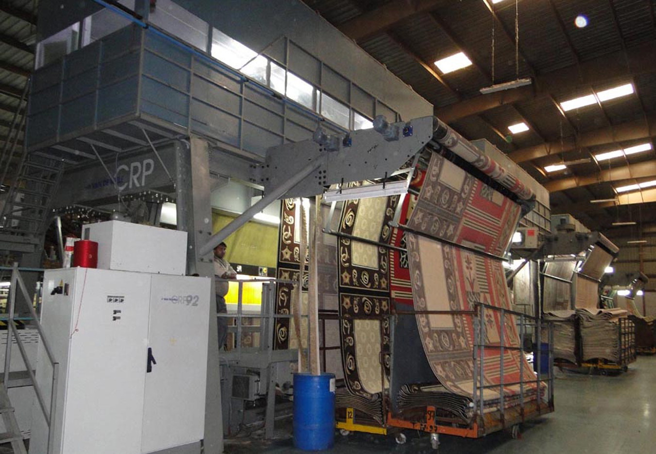 Different qualities of carpets are made in each of these yarns thereby enabling us to make a wide range of qualities in carpets from higher end carpet to economy range carpets. Here our major raw material is polypropylene resin and pigment for colour; out of which we make yarn and then finally finished carpets involving different process within the factory. The machine-made factory spreads over 25 acres of land.